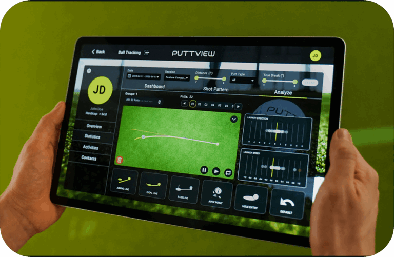 Our largest suite, featuring a dedicated PuttView putting green for short-game practice alongside full simulator play.